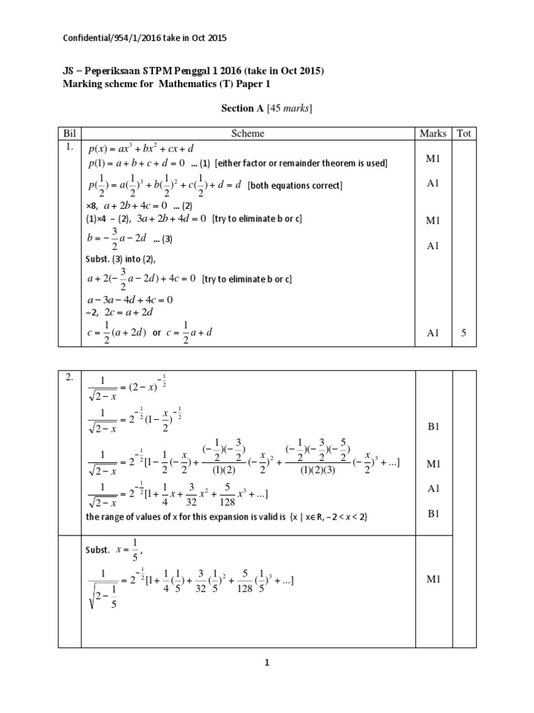 Panduan Pemarkahan Percubaan Stpm 2016 Penggal 1 Smk Tagasan Semporna Sabah